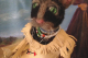 This little princess kitty is hand needle felted by me, L.Sim. She is made of wool, leather, wire and has hand made polymer clay eyes. She is fixed inside an antique leather baby shoe which in turn is fixed onto a stand of tangled twigs. The twig stand is made of real twigs and paper clay. Other materials included are feathers, glue, string, acrylic paint, beads, etc…